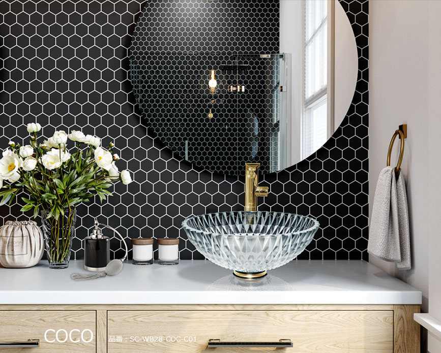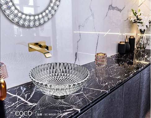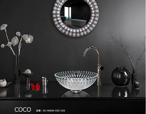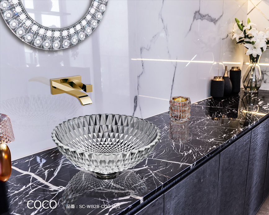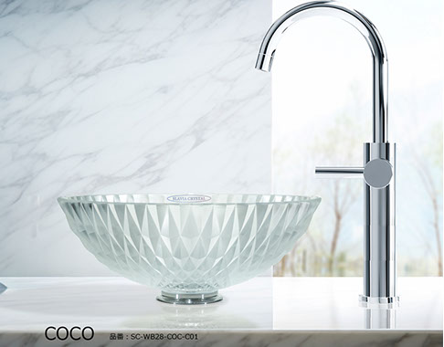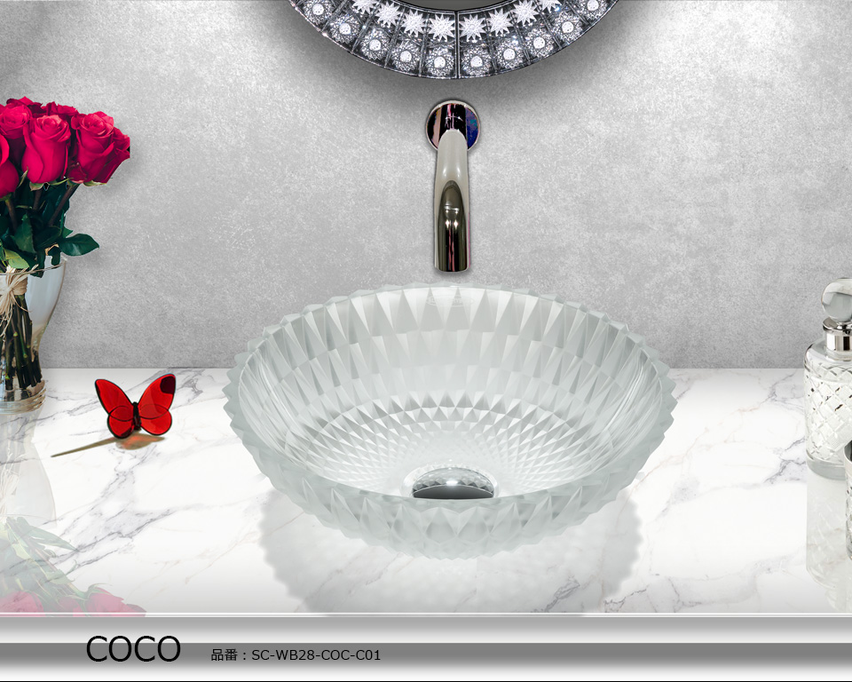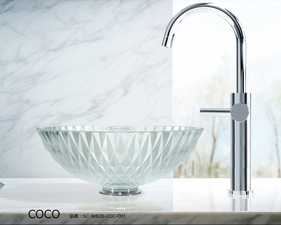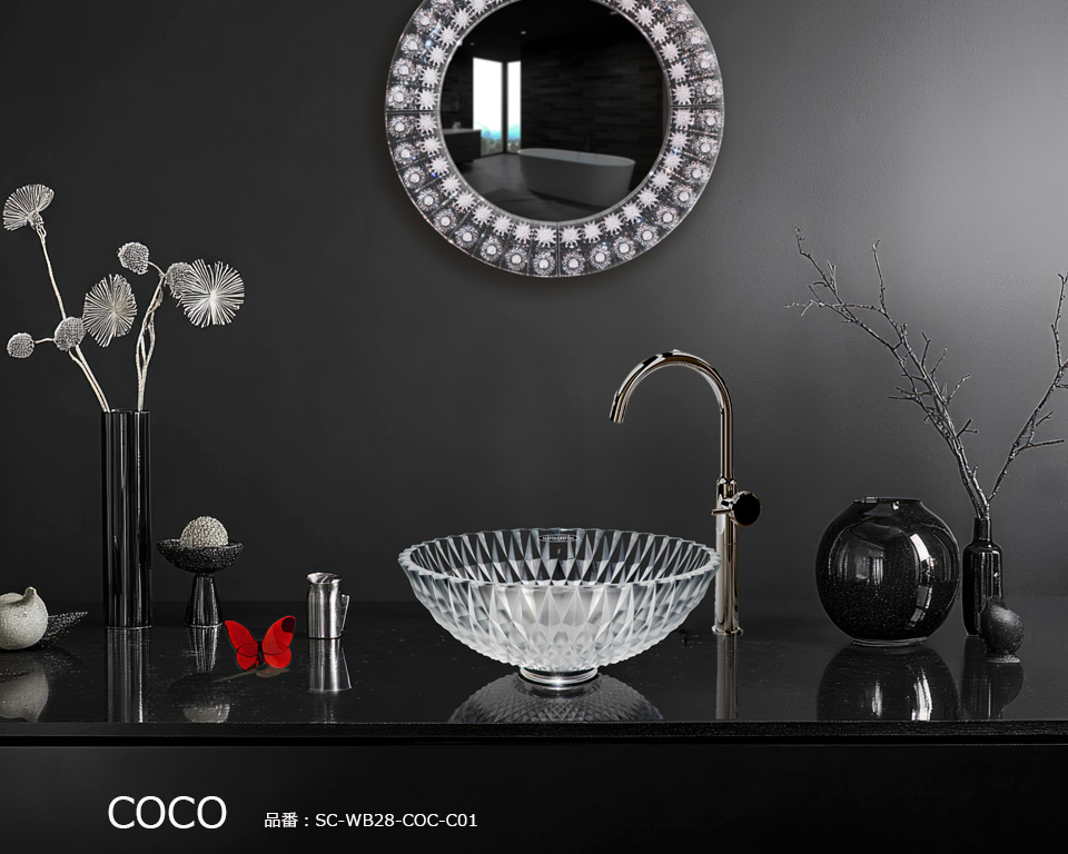 シリーズを象徴するCOCO(ココ)は、デザイナー カテリーナ・ハンドロヴァのシグネチャーが凝縮されたクリスタル手洗い器です。大胆で荒々しいオーバーサイズのカットと、磨き抜かれた表面が織りなす鮮烈なコントラスト。その存在感は、まるで宝石のファセットが光を受けて煌めく瞬間を思わせます。ココは、実用品を超えて空間を彩るクリスタル彫刻となり、洗面空間に新たな価値をもたらします。