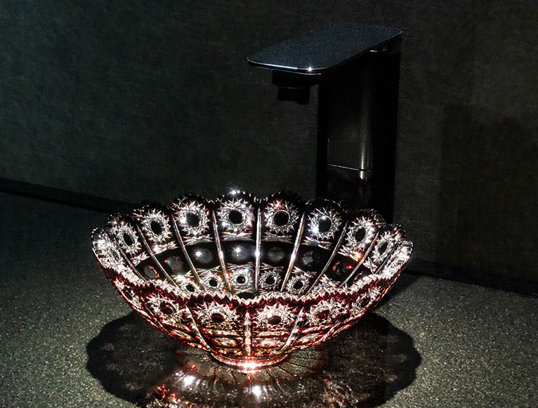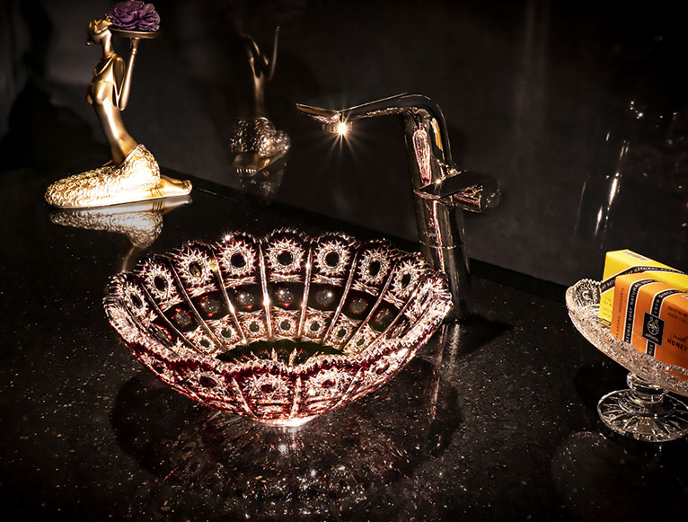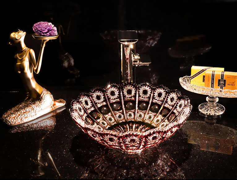 SLAVIA CRYSTAL Mimi Elizabeth RUBIN Crystal Sink, Crystal Sink, Luxury Bathroom Sinks, Crystal Sinks, washbasins, Wash bowls, Elegant Bathroom, Toilets Sinks, VESSEL BATHROOM SINKS, Beautiful, durable solutions, Marvelous, Small size, Ideal for small spaces.