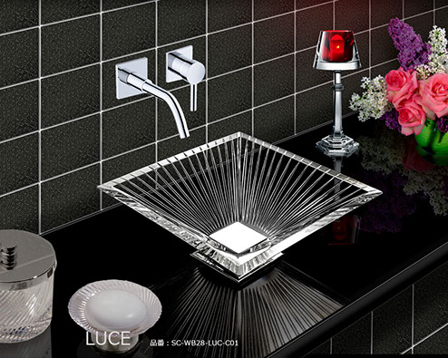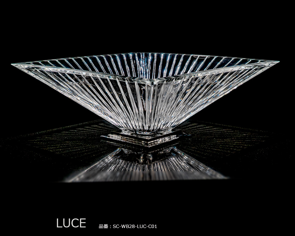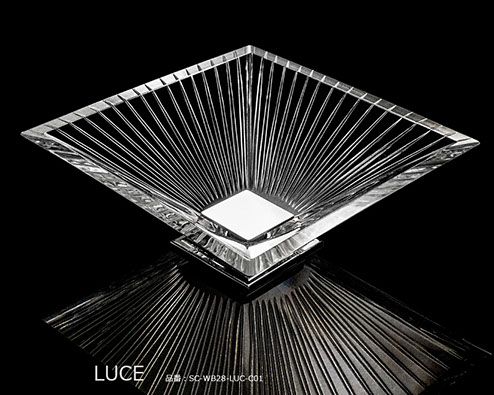 イタリア語で「光」を意味するルーチェは、太陽の輝きをエングレーヴィングで表現したクリスタル手洗い器です。すべての生命を育む太陽をモチーフに、シャープで力強い印象をうみだします。クリスタルの透明感と煌めきが融合し、洗面空間に華やかでゴージャスな表現をもたらします。
