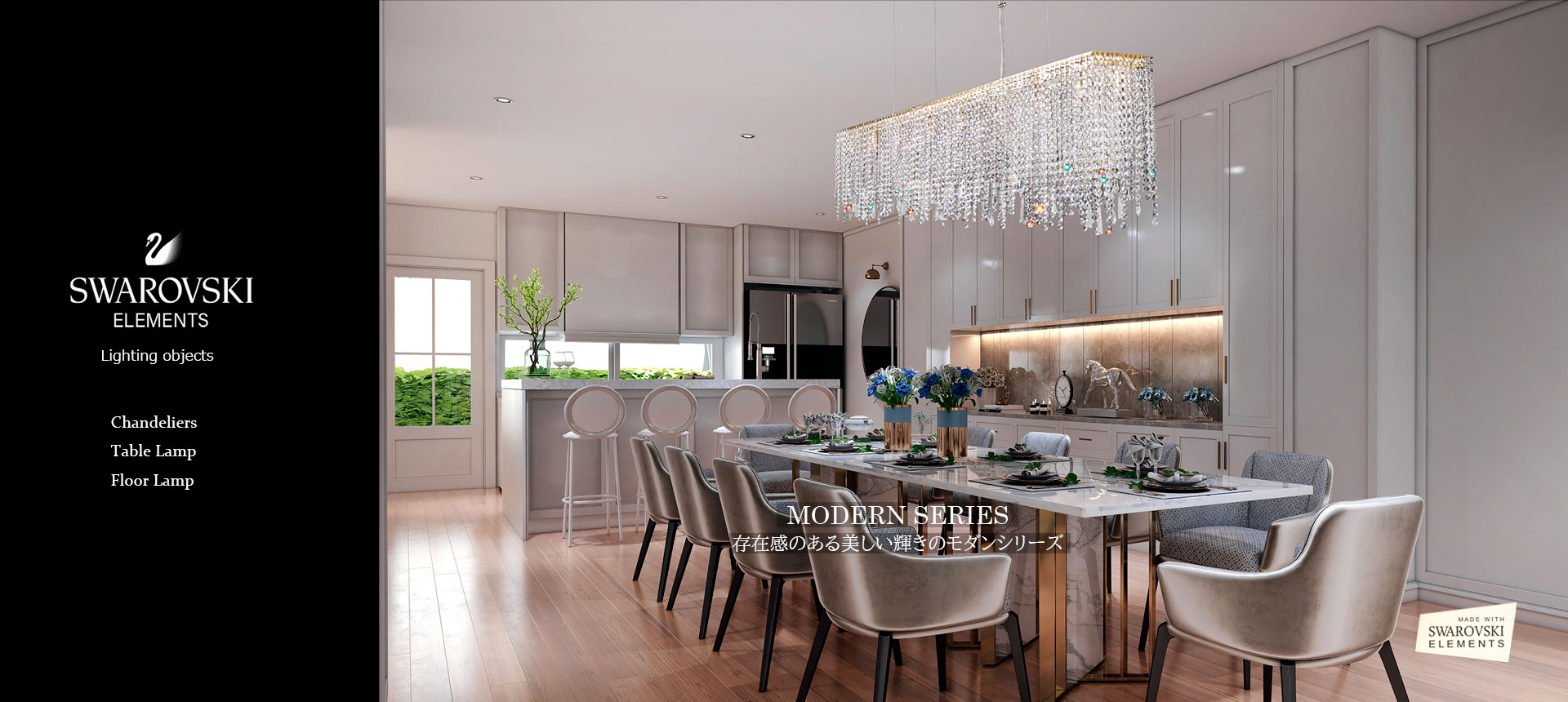 「SWAROVSKI ELEMENTS」ライティング(照明器具)総合カタログをご希望のお客様は下記「資料請求・お問い合わせ」までご請求くださいませ。