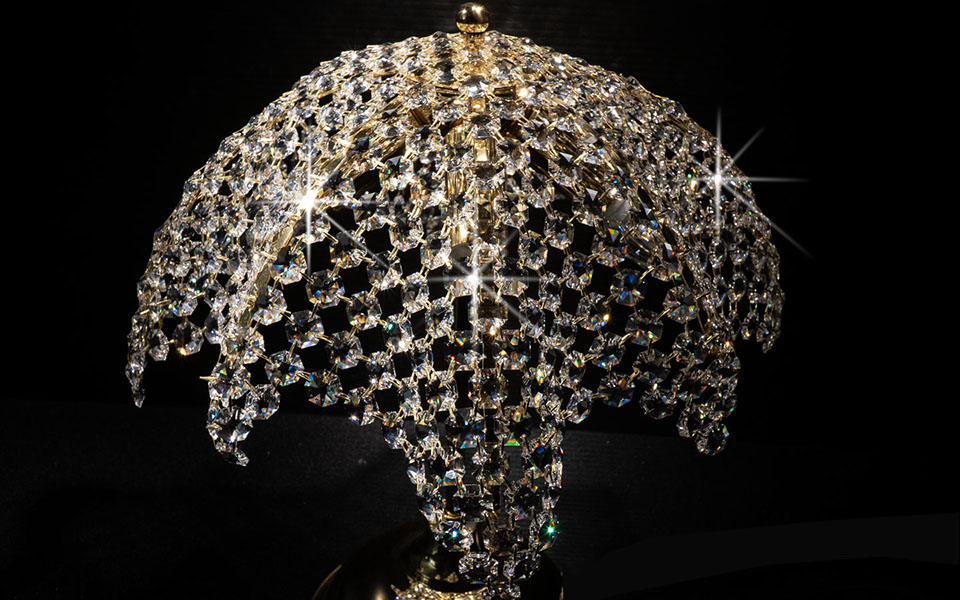 美しい輝きでモダンな空間から、クラッシックな空間に存在感あるアクセントをつけるテーブルランプとフロアーランプ、日中の自然光でもスワロフスキーならではの七色に輝くプリズム効果と輝きで圧倒的な美しさと輝きを放ちます。本体のフレームはボヘミアのグラスアームをはじめひとつひとつハンドカットされたボヘミアンクリスタルを使用しています。また、「SLAVIA CRYSTAL」スラヴィアクリスタル オリジナルのテーブルランプも発売いたしました。「SWAROVSKI ELEMENTS」直径15mmの「octagone」6番を美しく編み込んだ美しい輝きのテーブルランプもお選びいただけます。なお、テーブルランプ・フロアーランプは組み立てが必要となります、製品価格には組み立て料金・送料は含まれておりません。また電球も製品価格には含まれておりませんのでご注意下さいませ。