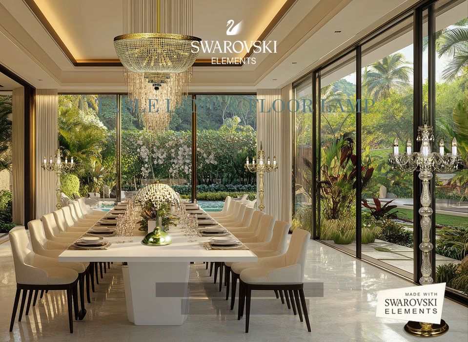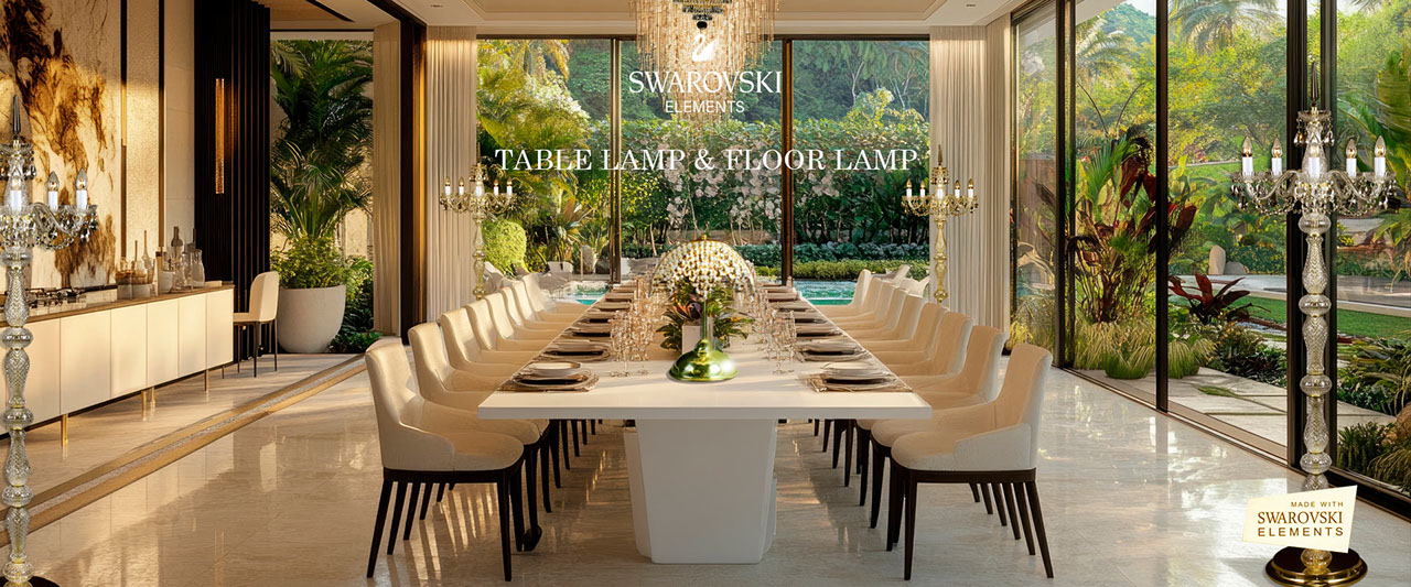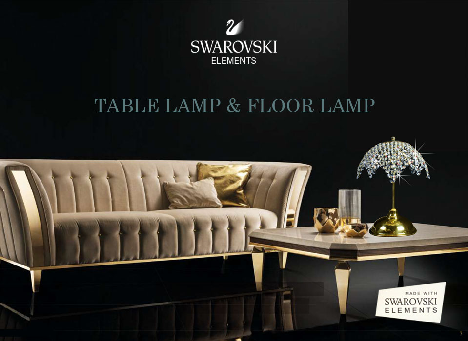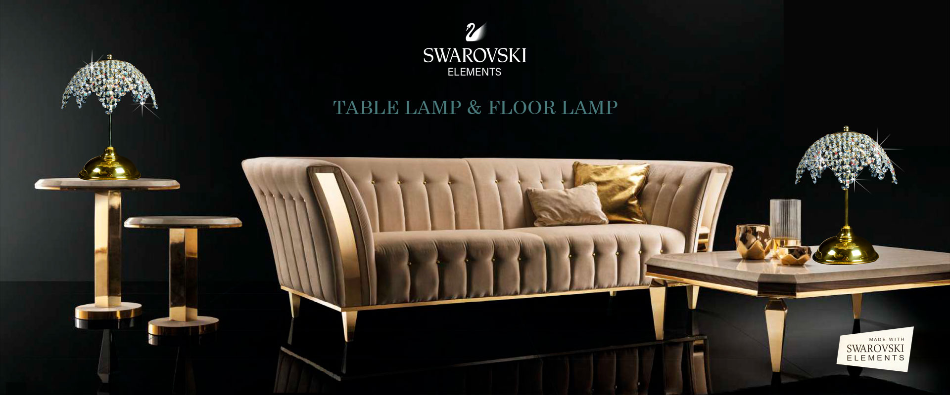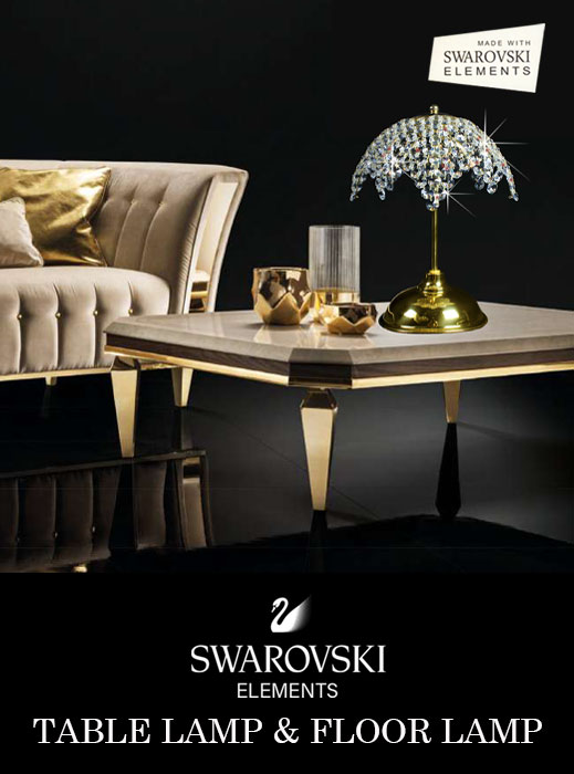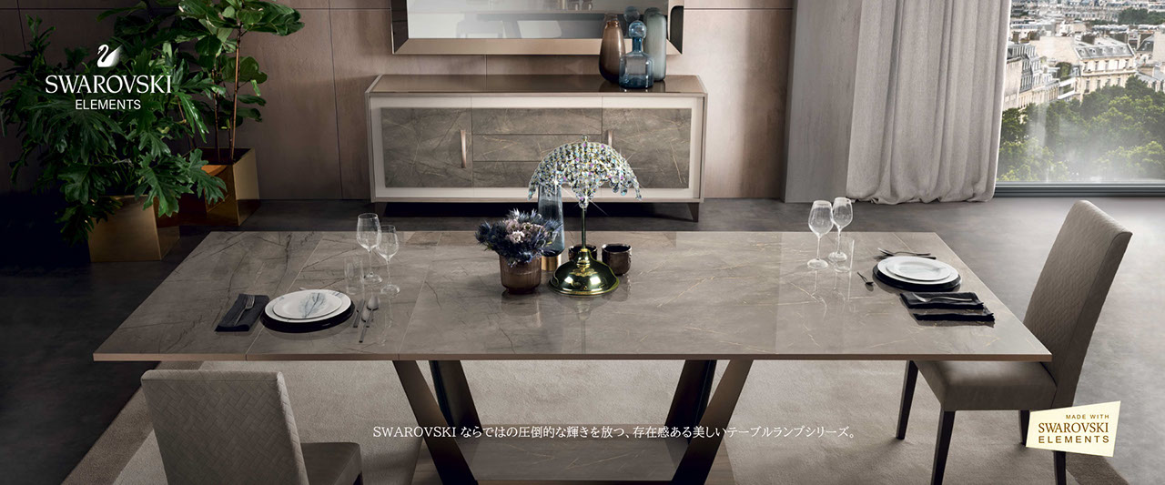ヨーロッパ伝統のクラッシックフレームモデル、「SWAROVSKI ELEMENTS」のドロップが美しく輝く格調高いシリーズです。リビングテーブルランプとして、フロアーランプはリビング、ベットルームなどを美しいアクセントで演出いたします