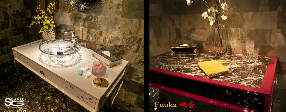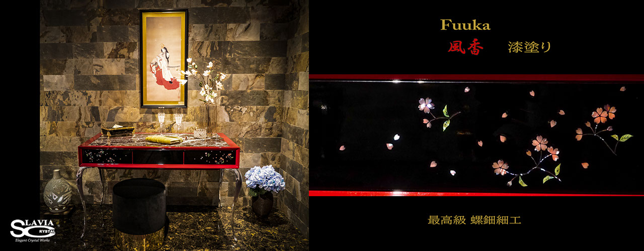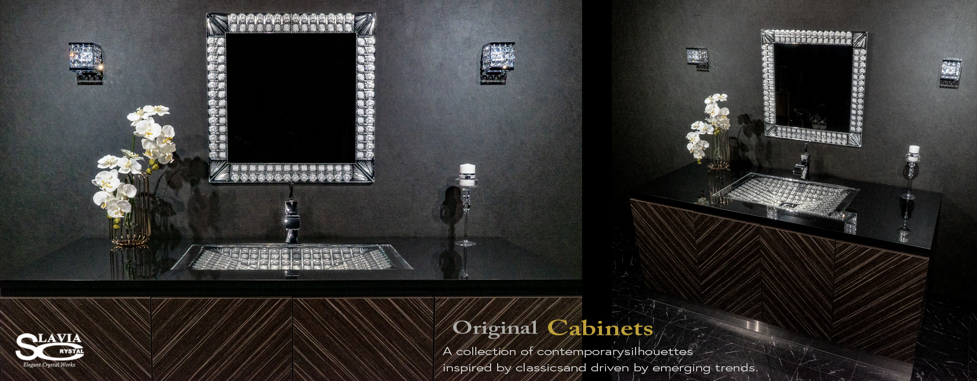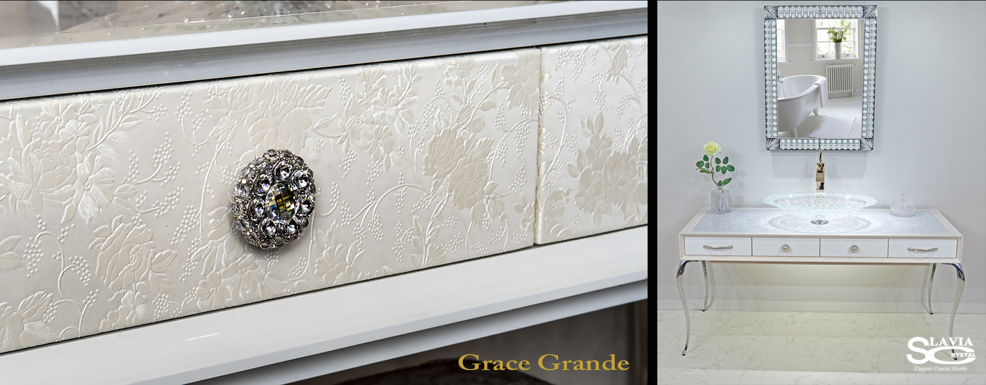 SLAVIA CRYSTAL オリジナル コンソールは 1600mm ~ 1200mmサイズが標準サイズとなりますので、脚のスタイル、引き出しパネル、天板素材、本体色、すべてオーダーメイドで御注文頂けます。