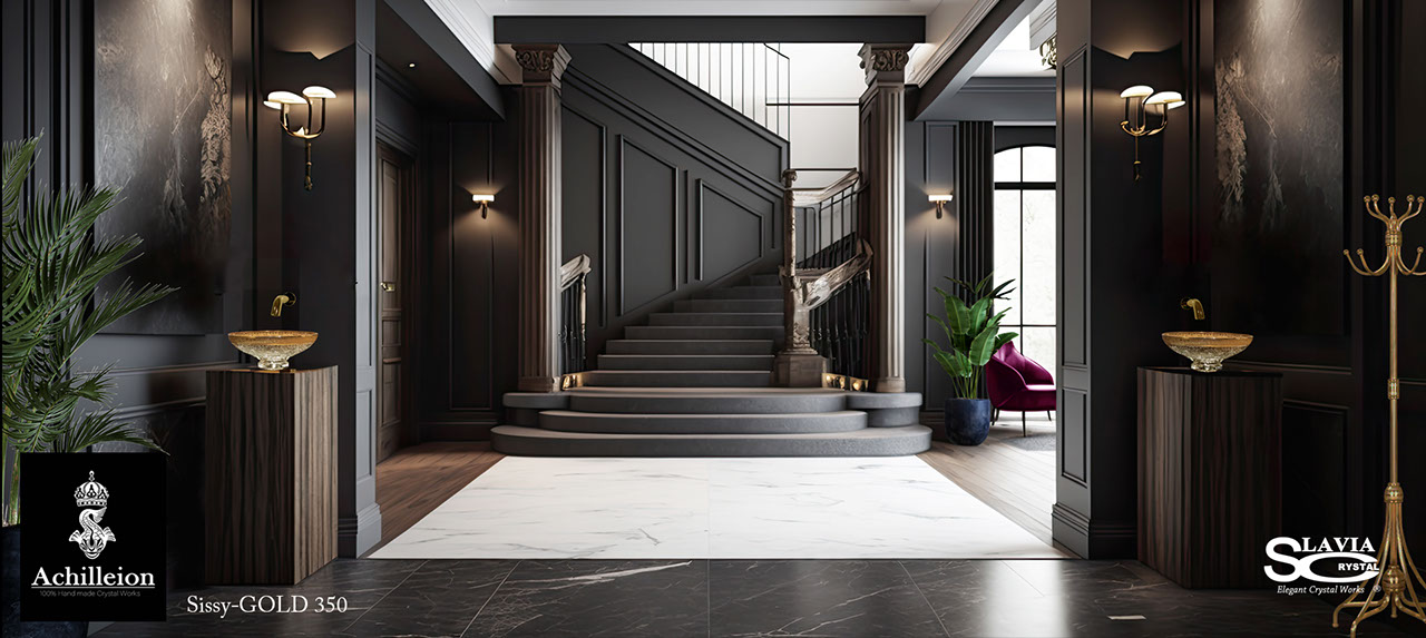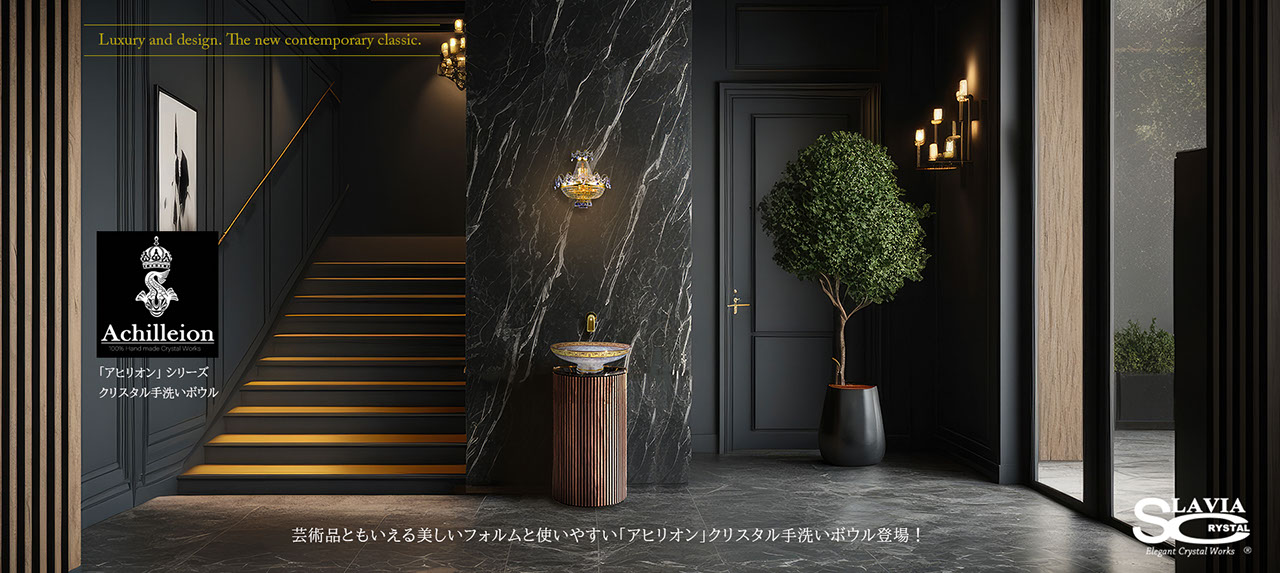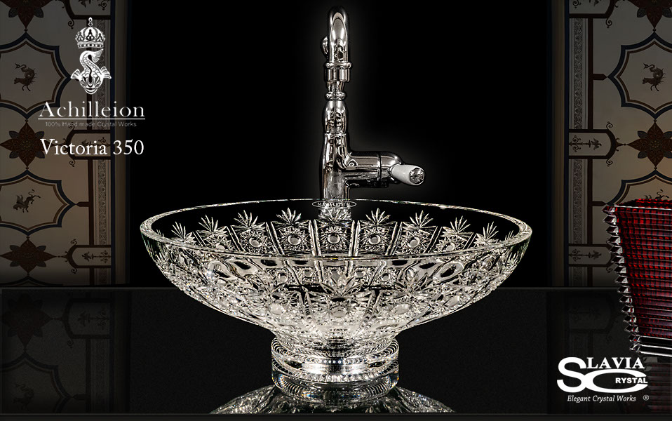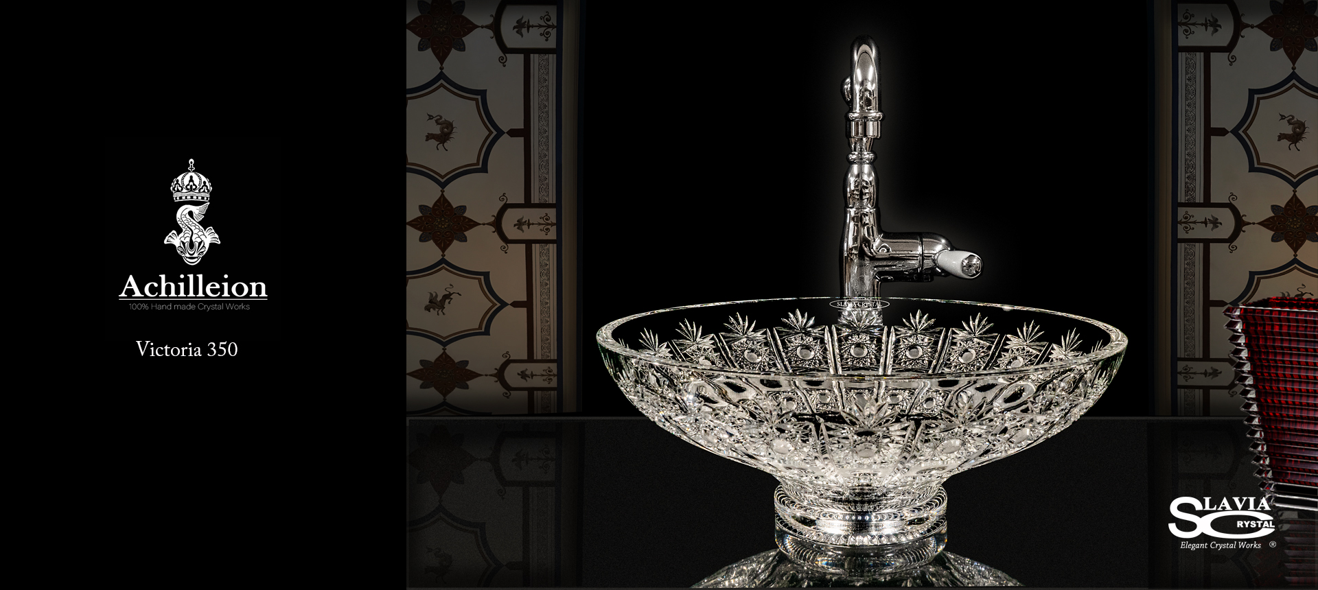 Achilleion (アヒリオン)のカッチィングデザイン(ガラス彫刻)はボヘミア伝統の pk500 をはじめとしてマリア・テレジアが、スロヴァキアの宝石と称した VICTORIA 160.今回アヒリオンの為の最高級モダンカットデザイン、「Sissy 」(シィシー)も特別に製作いたしました。ハンドメイドでしか表現できない美しいフォルムと輝きの逸品です。