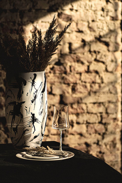 バスティリー コレクションは、白地に黒の絵で思わず夢中になってしまいます。 この抽象的な赤ワイングラスは、どんな部屋でもスタイリッシュに目立ちます。 ハンドペイントは描き手の感情に導かれて描かれるため、微妙な違いがあり、唯一無二のオリジナルが生まれます。 抽象化に賭けて、このオリジナルをご自宅にお招きください。