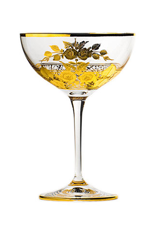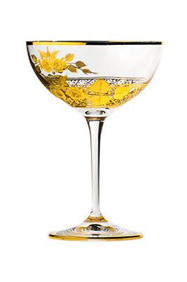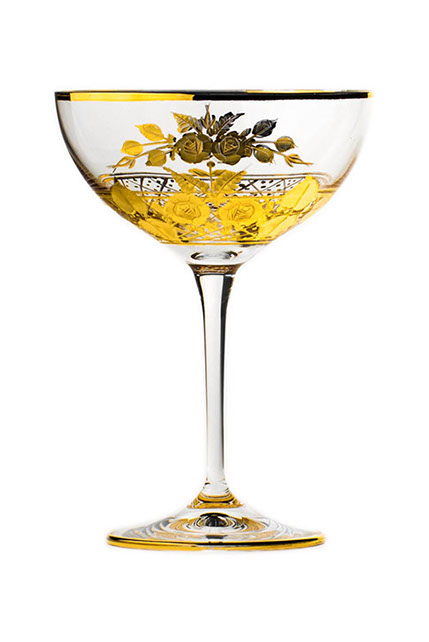 容量210mlのカクテルやスパークリングワインを飲むためのグラスです。 豊かな手彫りの花束モチーフがマットなカラットゴールドでさらに強調され、光沢のあるゴールドの縁が引き立てられています。 珍しいブーケシリーズは飲み物の種類に合わせて数種類のグラスの形を作り、金メッキの彫刻が特徴です。