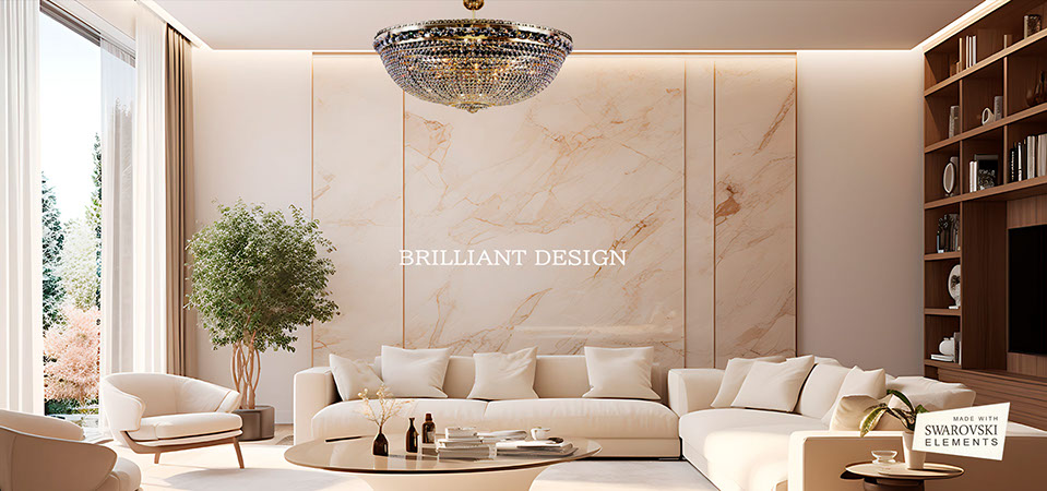 SLAVIA CRYSTAL ORIGINALのおしゃれなデザインと「SWAROVSKI ELEMENTS」の融合でモダン・コンテンポラリー・クラッシック空間にもアクセントをつける美しいシャンデリアシリーズ。一般家庭からホテル・大規模な商業施設にも対応できる大きなサイズも取り揃えております。大型特注サイズもご相談ください。