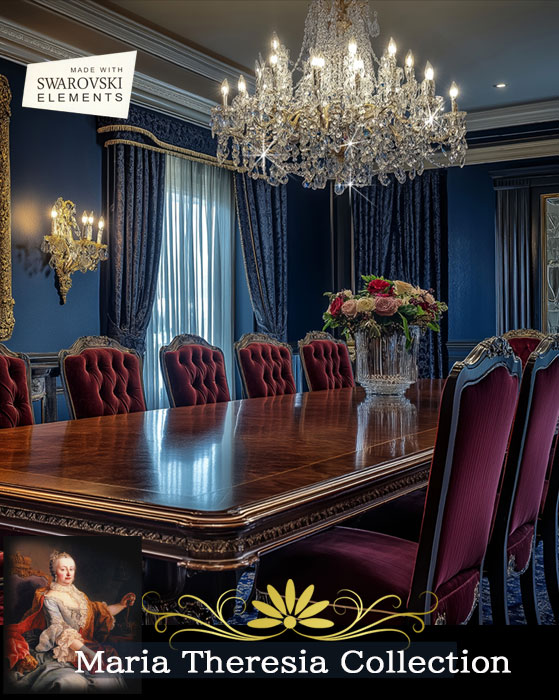 マリア・テレジアが愛したシャンデリアシリーズは、オーストリア・ハンガリー帝国の華やかな宮廷文化を象徴する逸品です。このシリーズは、最高級のスワロフスキードロップで装飾されており、その輝きと美しさは他に類を見ません。シャンデリアのデザインは、18世紀のバロック様式を取り入れ、豪華で繊細な装飾が施されています。スワロフスキードロップは、光を受けて虹色に輝き、部屋全体を華やかに演出します。これにより、シャンデリアは単なる照明器具としてだけでなく、芸術作品としても評価されています。このシリーズは、マリア・テレジアの時代から続く伝統と技術を受け継ぎ、現代のインテリアにも調和するデザインとなっています。歴史と現代が融合したこのシャンデリアは、どんな空間にも優雅さと高級感をもたらします。マリア・テレジアが愛したシャンデリアシリーズは、まさに贅沢と美の象徴です。これを手に入れることで、あなたの空間もまた、歴史と伝統の輝きに包まれることでしょう。