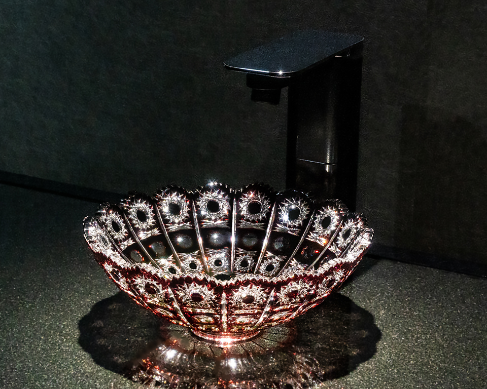 SLAVIA CRYSTAL Mimi Elizabeth RUBIN Crystal Sink, Crystal Sink, Luxury Bathroom Sinks, Crystal Sinks, washbasins, Wash bowls, Elegant Bathroom, Toilets Sinks, VESSEL BATHROOM SINKS, Beautiful, durable solutions, Marvelous, Small size, Ideal for small spaces.
