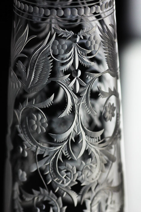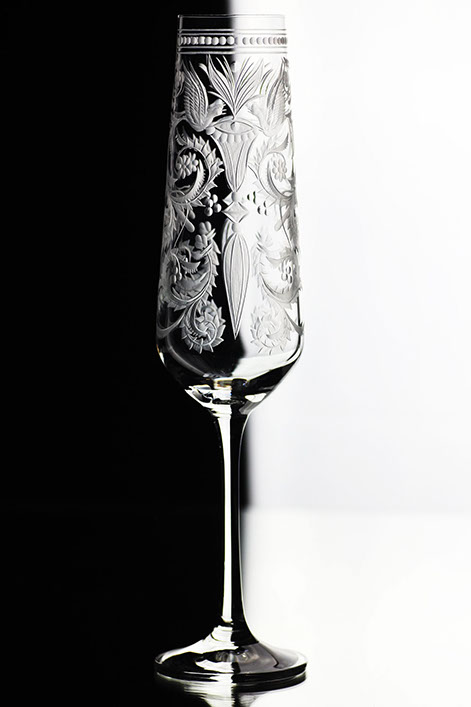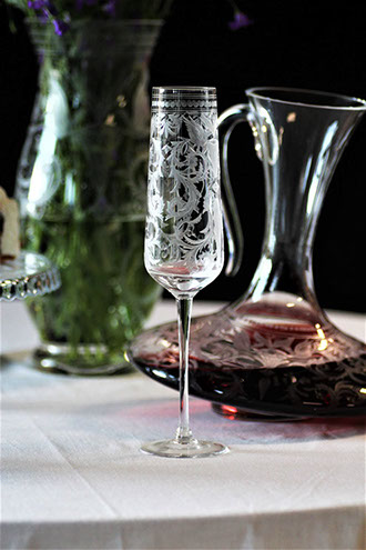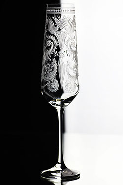 シャンパン グラスのモダンな形状には、非常に手間のかかる手彫りの豪華な装飾が施されています。 Evpas シリーズの製品では、伝統と現代的なコンセプトが組み合わされています。 この装飾はガラス工場の設立時にすでに作成されていました。 その人気と時代を超越したデザインにより、EVPAS ブランドの代名詞となっています。