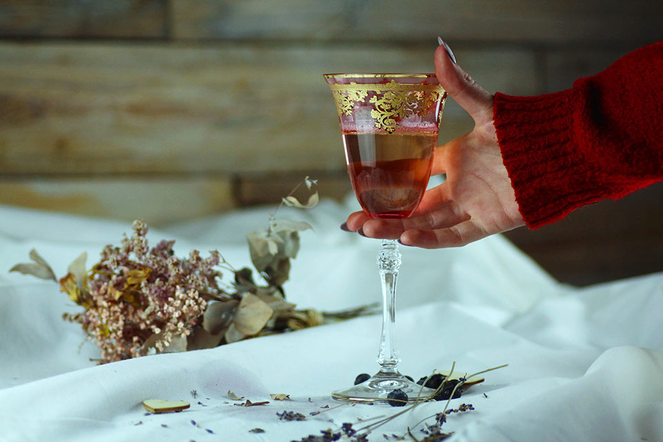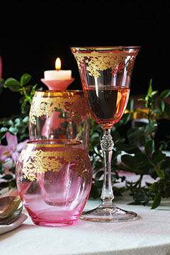 緩やかなカーブを描いたベル型で、心地よく飲める白ワイングラスです。 最も大きな特徴は、金色の蔓の装飾で、淡いピンクの色合いがそれを引き立てています。 グラスの色は透明なので飲み物の様子がいつでも確認できます。 Grapevine シリーズの他の形もテーブルに合わせてご覧ください。