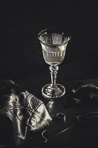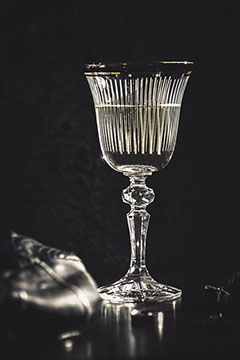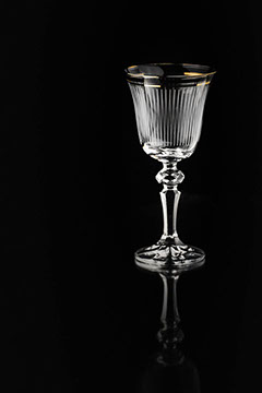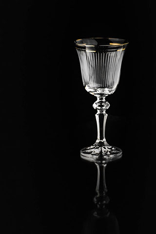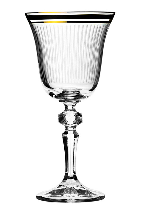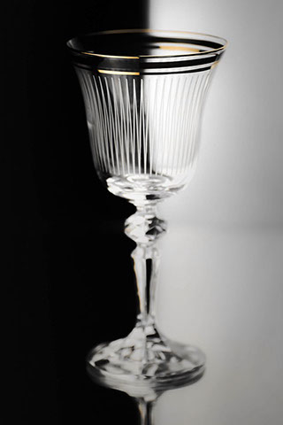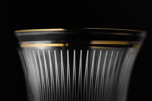 高級感と気品を感じさせる、とてもにエレガントな白ワイングラスは必見です。 彫刻と手塗りの純金と黒を組み合わせたデザインが、グラスをより一層格式高く格上げします。 ブラックとゴールドのクラシックな組み合わせが、手にしたガラスの美しさに反映されている、非常に美しい逸品です。