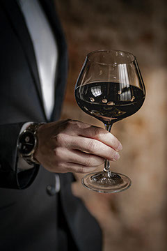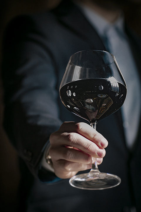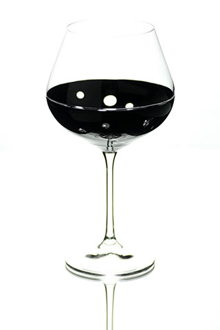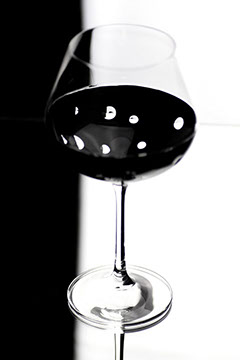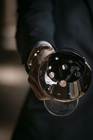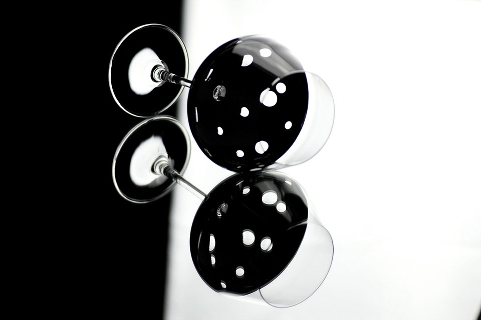 たっぷりとしたサイズのゴブレットは、クリアなガラスと光沢のあるブラックの表面のコントラストがバランスよく映えるシンプルなデザインで、手彫りのビーズがアクセントになっています。 すべてを組み合わせると、新鮮でモダンな印象が生まれます。