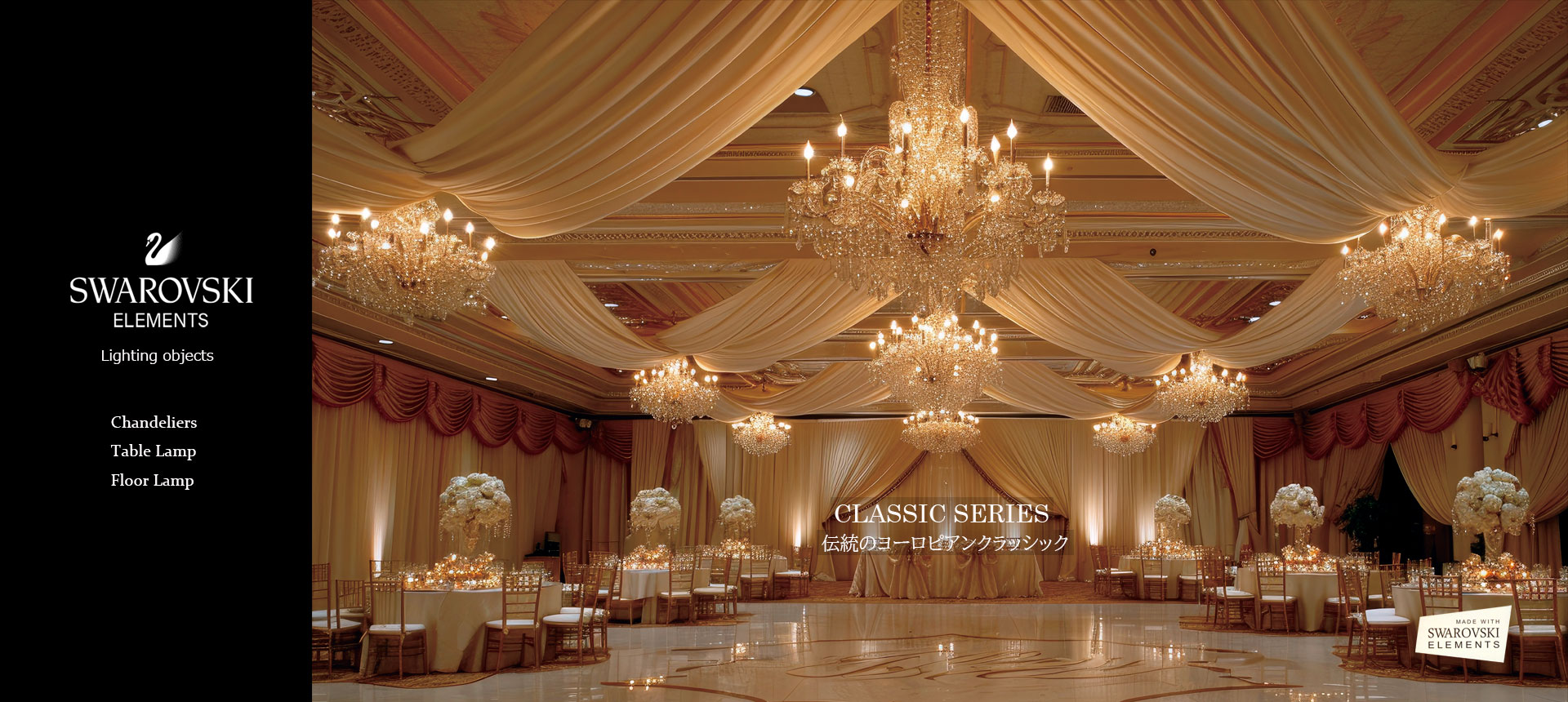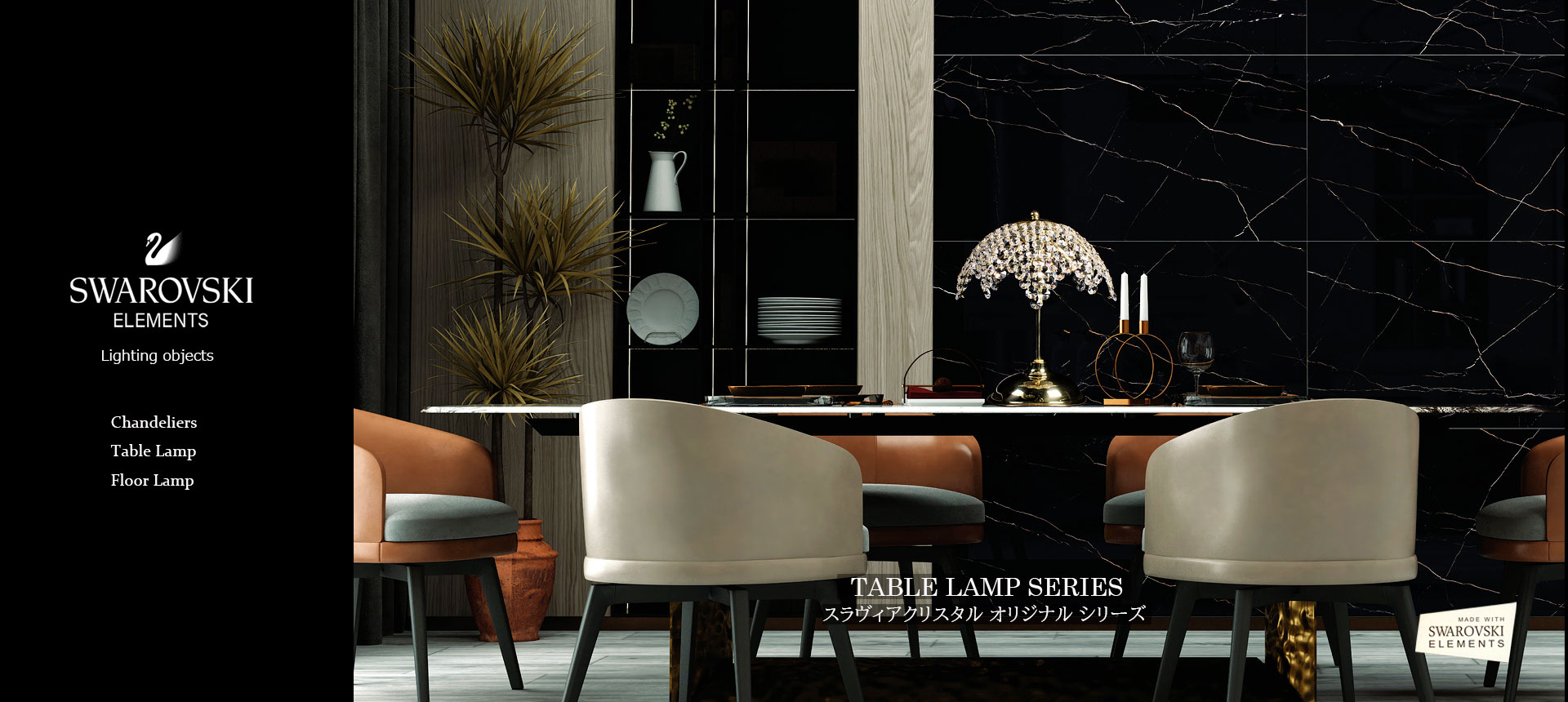 「SWAROVSKI ELEMENTS」ライティング(照明器具)総合カタログをご希望のお客様は下記「資料請求・お問い合わせ」までご請求くださいませ。