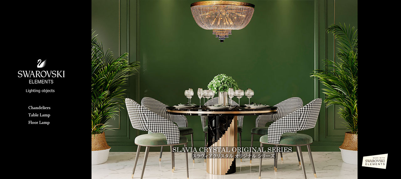 日本では「SLAVIA CRYSTAL」が正規輸入元として一般家庭をはじめ、商業施設への販売・卸・特注品の注文を承っております。また正規製品販売店としての豊富なスペアーパーツ供給から、取り付け施工・メンテナンスサービスまでおこなっておりますので、安心してお買い求めいただけます。ご購入は全国の弊社代理店もしくは弊社でも承っておりますのでお気軽にご相談くださいませ。
