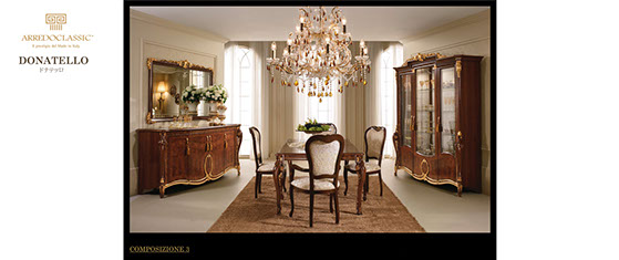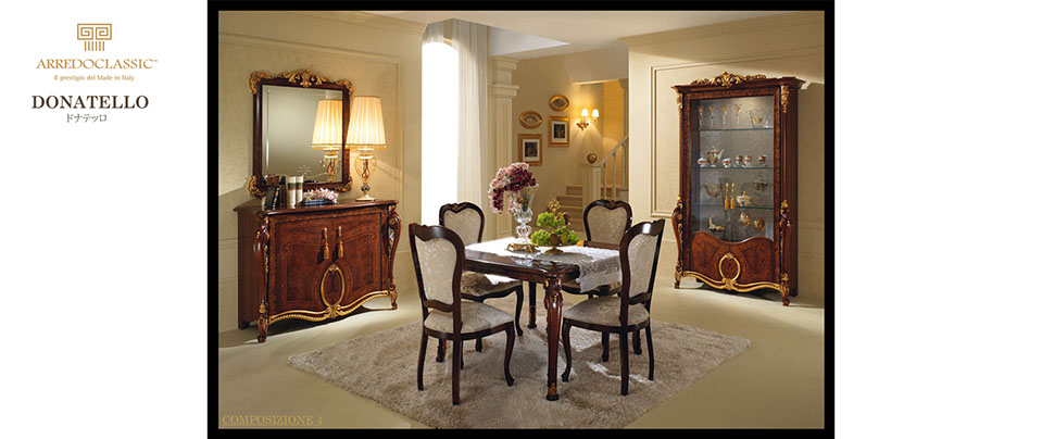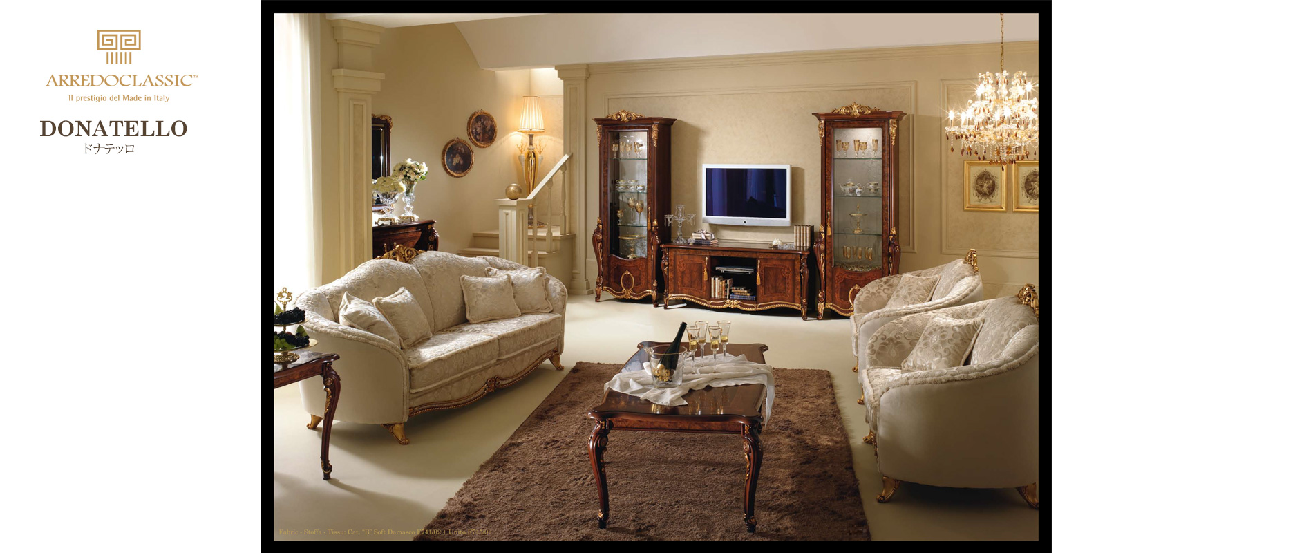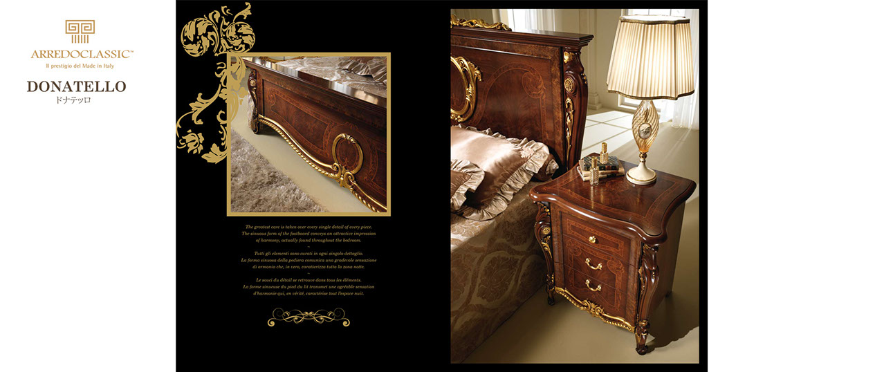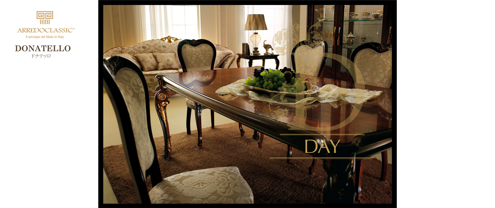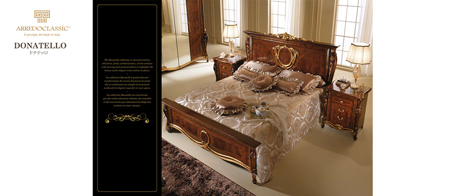 ドナテッロは、Arredoclassic が誇る至高のコレクションです。 ルネサンスの華麗な装飾様式を継承しつつ、各家具に施された精緻なフリーズや優美なディテールが、格調高いクラシックの美と洗練された現代性を優雅に調和させています。真のイタリアン・クラフツマンシップが息づくハンドメイド家具の贅を極めたコレクション。 住まいに上質な存在感と永く愛される美を求める方々のために、素材選びから仕上げに至るまで、細部に宿る職人の技と美意識を余すことなく注ぎ込んでデザインされています。