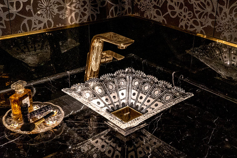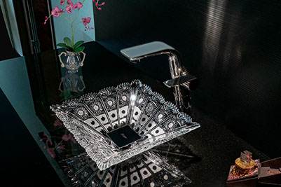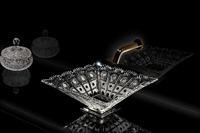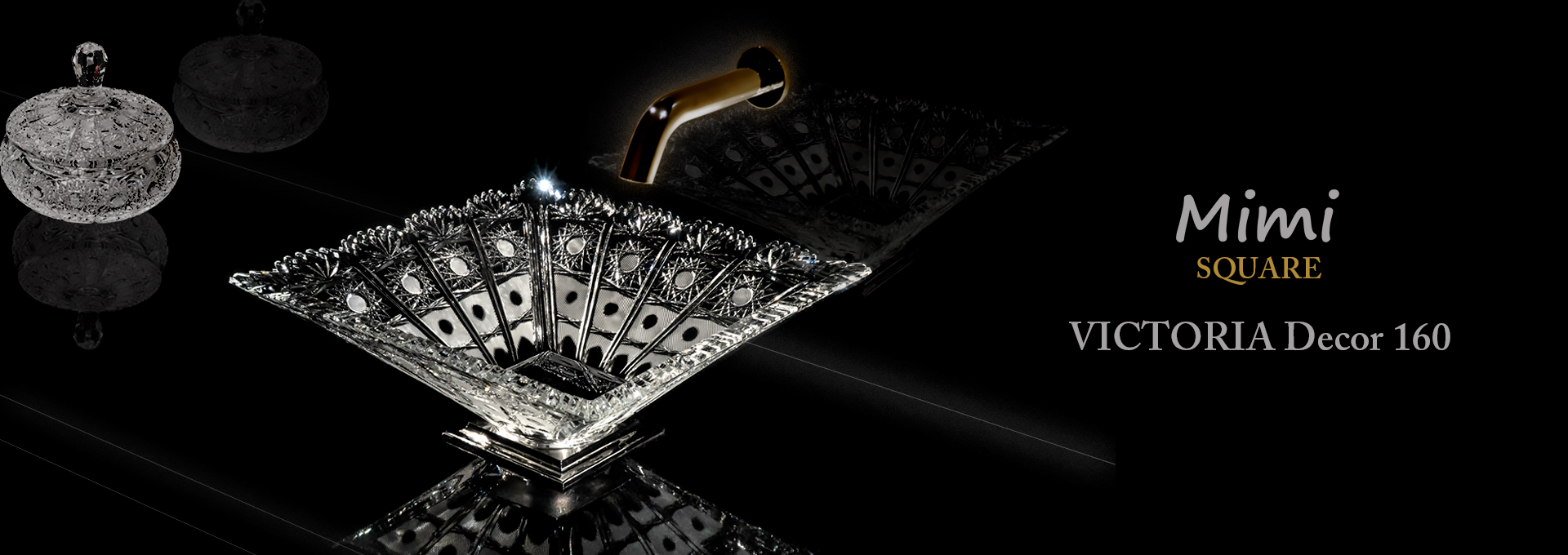 オーストリア ハプスブルグ帝国の女帝 マリア・テレジアがスロバキアの宝石と称した、スロバキア伝統の160PK(VICTORIA)カッティング(カラス彫刻)を施した、非常に美しい輝きを放つ おしゃれなクリスタル手洗い器です。伝統のレースカッティングデザインと美しいスクエアーのフォルムは上品で豪華な洗面空間を演出いたします。