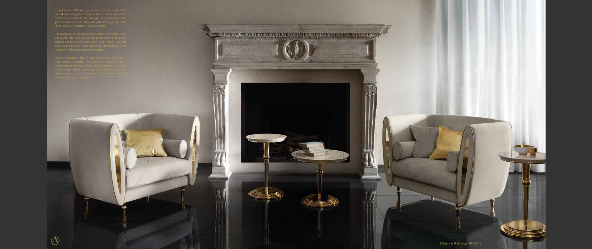 シパリオ・コレクションはアドラシリーズの最初の作品です。シパリオは新ブランドの哲学を完全に尊重しています。ラグジュリー・ア・ポルテルこそがこのコレクションの本質であり、仕上げと細部を通じて表現される現代的なブレイクスルーです。Siparioはどんな空間でもその痕跡を残します。それぞれの家具は環境をより特別なものにするために考案されており、洗練された貴重なディテールと独特な装飾が、あなたの心に刻み込まれるスタイル要素となっています。