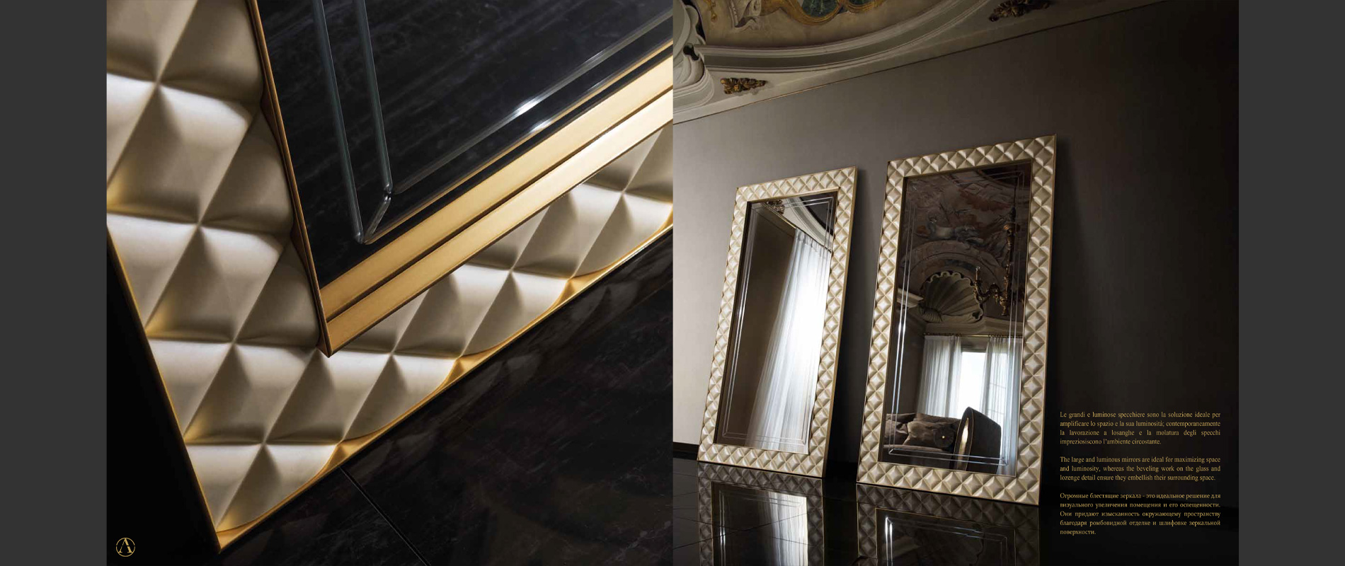シパリオのコレクションはクラシックな形態を探求し、それらを流れるようで優雅な輪郭へと調整しています。これはクラシックな装飾の豪華さと現代的なミニマリズムの融合であり、それぞれの特徴を際立たせています。また、革新的なハイテク素材の使用がシパリオの特徴モザイクに加わりました。フレームのコーティングのように、貴重な絹のような耐久性と触感を兼ね備えたソリューション。新しいアドラスタイルのすべては、印象的で配慮された金色のラッカーと真鍮のディテールで磨かれています。美しさへの趣味は、自宅の温かさの中で毎日楽しむ楽しみであるべきです。