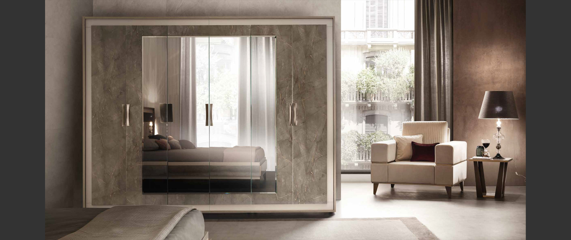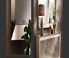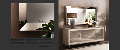 エルム材、サテンブロンズ、光沢グレーの大理石、ミラーガラスなどが調和し、「シンプルなのに豊か」な雰囲気を演出します。