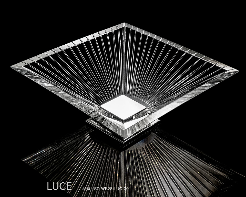 イタリア語で「光」を意味するルーチェは、太陽の輝きをエングレーヴィングで表現したクリスタル手洗い器です。すべての生命を育む太陽をモチーフに、シャープで力強い印象をうみだします。クリスタルの透明感と煌めきが融合し、洗面空間に華やかでゴージャスな表現をもたらします。