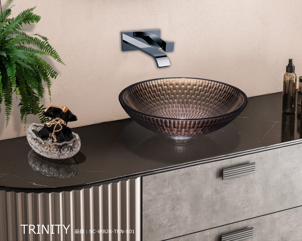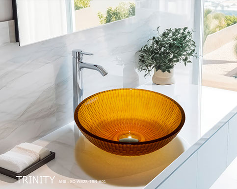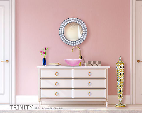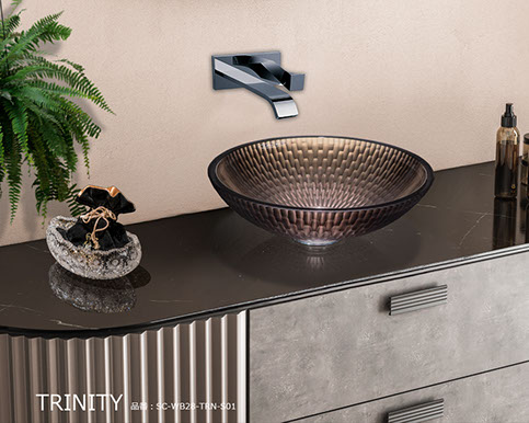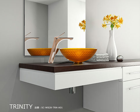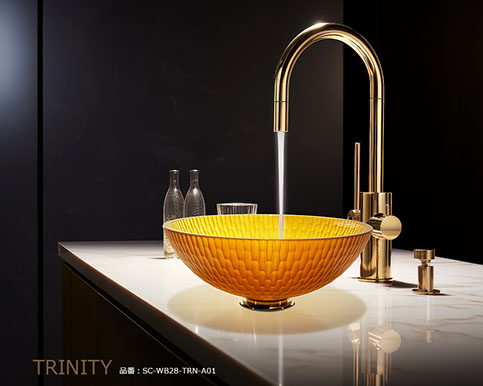 伝統的な亀甲柄と柔らかなラウンドフォルムという、2つの要素が融合し、気品あふれる存在感を放つトリニティーラウンド。カラーリングの選択によって、都会的でモダンな表現にも、どこか懐かしいレトロな趣にも姿を変え、手洗いの空間を豊かに彩ります。